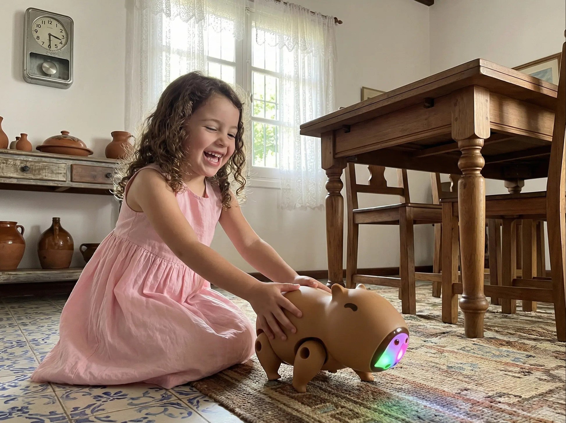 Carpincho Interactivo LED con Luz, Sonido y Movimiento | Juguete Sensorial Recargable 18x10 cm